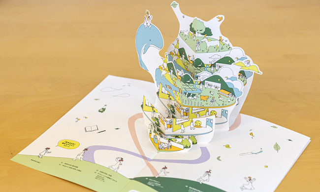 大学案内とは異なるインパクトのあるデザインにしたいとのご要望に基づき、イラストがポップアップするパンフレットを作成。
