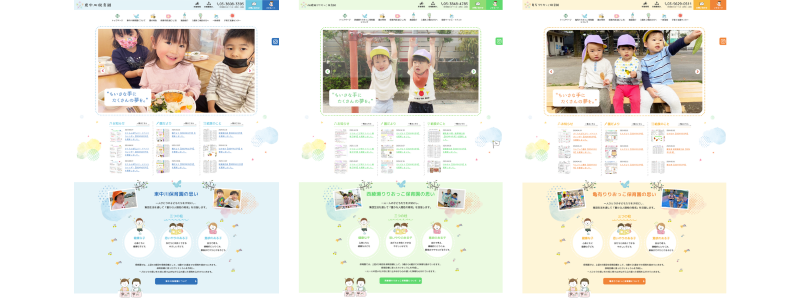 また、東中川保育園様、西綾瀬りりおっこ保育園様、亀有りりおっこ保育園様のホームページはオリジナル設計・デザインが実現できる「ブランディングプラン」をお選びいただきました。