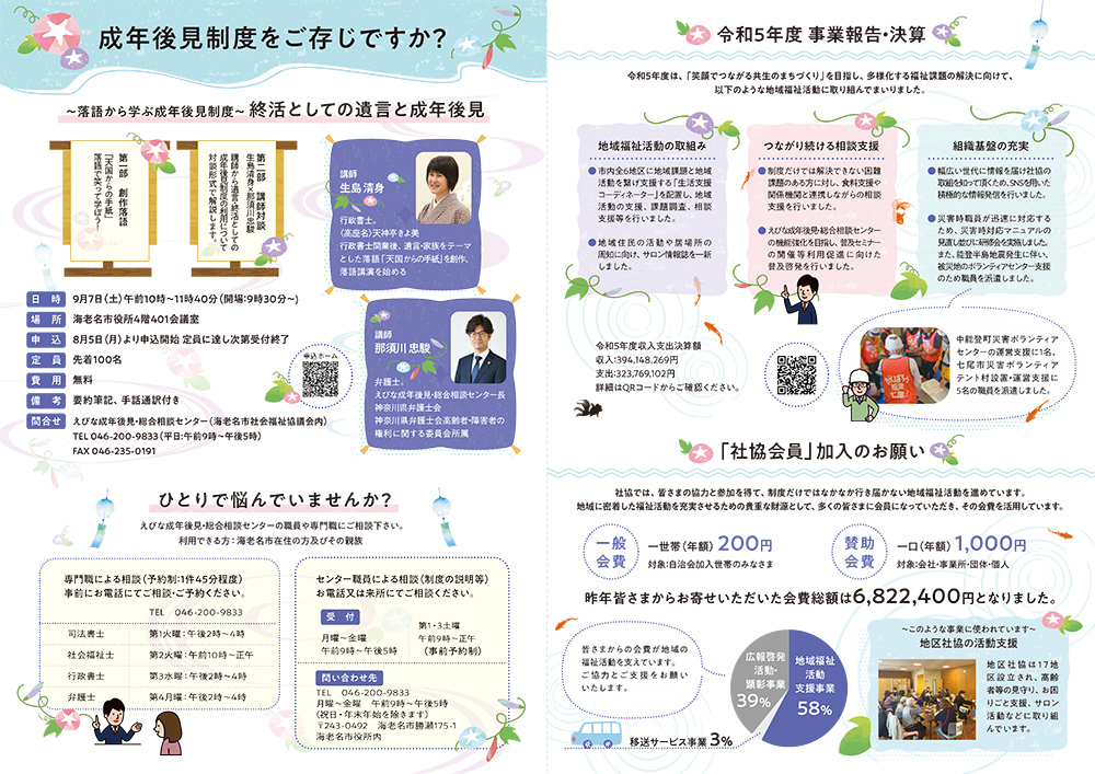 海老名市社会福祉協議会様が発行する広報誌 「ぬくもり通信」のデザインから印刷手配までをお手伝いしました。