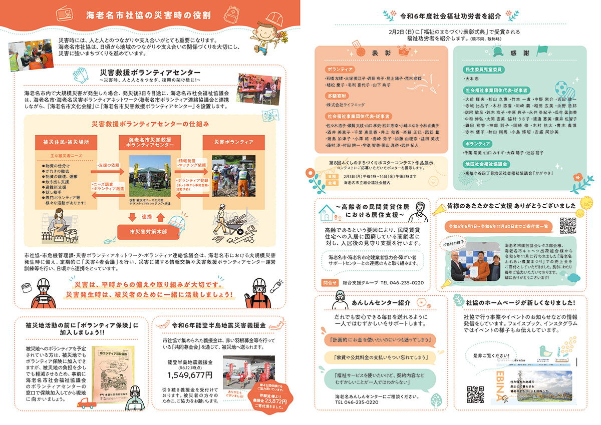 しかし、従来の読者(高齢者の方々)を離したくはない、という思いもあり、新しくはあるが、高齢者の方々にも海老名社協だと受け入れてもらえるような、そんなデザインになるように制作を進めました。