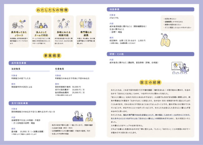 一般社団法人を立ち上げて仕事をしていく上で、まずはパンフレットや名刺が必要になったとのことでご依頼をいただきました。